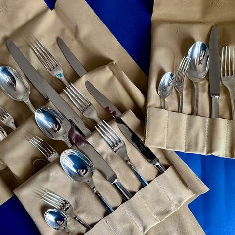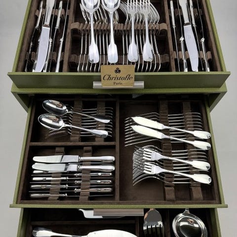 2 Atlas-saucebåde. Atlas-kollektionen blev designet af Luc Lanel i 1933 for Christofle. Oprindeligt tænkt til hotelbranchen, er disse stykker puristiske, med stramme, ukonstillerede former. Funktionalitet går forud for dekoration. Dimensioner: 16 x 9 x 6 cm. Vægt: 250 gram / 14 x 7 x 5,5 cm. Vægt: 150 gram