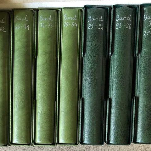 Flot samling i Lindner fortrykte album, næsten komplet i postfrisk tilstand fra 1949-1990. Det mangler kun de fleste Posthorn-mærker samt nogle få andre mindre værdier. Ellers er alle topmærker fra de første år inkluderet. Alt i det dyre, nytiltrykte album. Kvalitetsgenstand af høj kvalitet direkte fra samlerens bo. (Bemærk venligst, vi kan altid kun foretage stikprøver af de vigtigste udgaver. Vi kan ikke garantere, at alle mærker er i perfekt stand. Derfor afbilder vi også hele samlingen.)