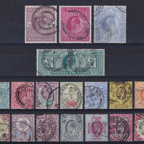 Storbritannien, 1847, 5/7, seks frimærker brugte, nr. 5 med farver, i meget flot stand. Klik på den blå "gå til varen" knap, for at købe eller byde på denne vare. Den samlede pris vil blive vist inden du afgiver dit bud.