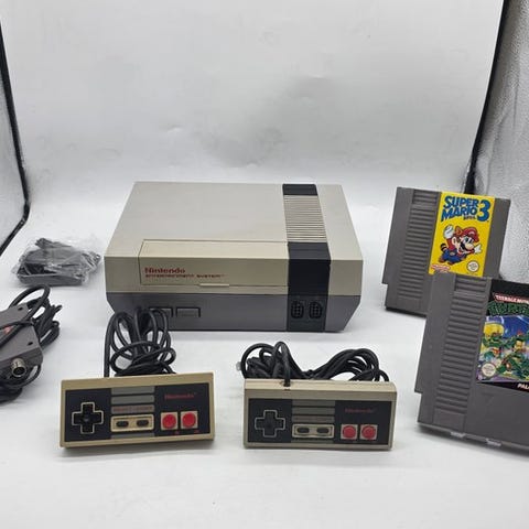 Limited edition Nintendo NES 8-bit klassisk konsol (1985 PAL) inklusive Zapper, kabler, controller og Duck Hunt-spil, i funktion. Klik på den blå "gå til varen" knap, for at købe eller byde på denne vare. Den samlede pris vil blive vist inden du afgiver dit bud.