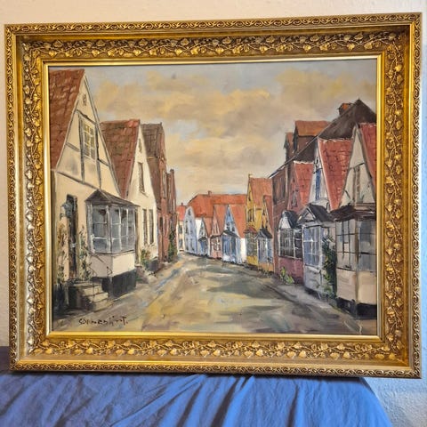 “Kunstner Ørbech J, maleri fea Tønder i "guldramme" (Uden ramme 39x49 cm, med ramme 54x64 cm)”