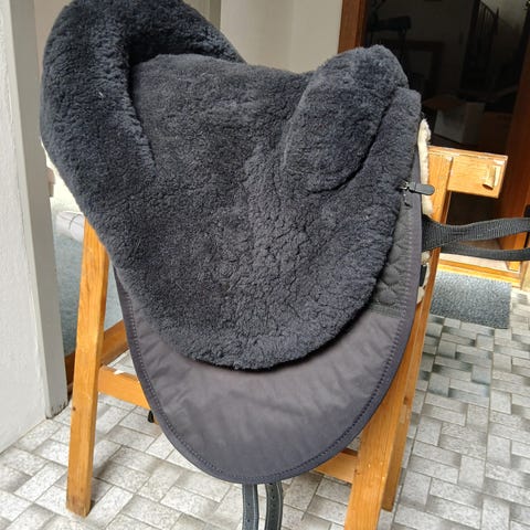 Lammeskinds sadel af ægte lam. Den ser ud som ny og er kun redet i 3-4 gange .