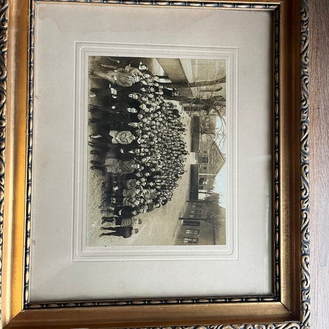 Stort 60'er Billede...jeg har svært ved at bedømme om det er et maleri eller tryk på plade...brugsspor på rammen ellers I super stand