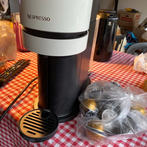 Nespresso kaffemaskine med mælkeskummer.