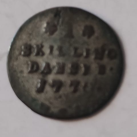 Danmark 1 Skilling 1771 Stempelvariant det første 1 tal i 1771 mangler.