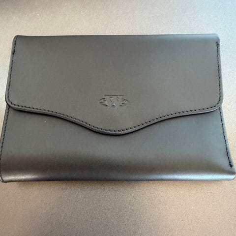 Whyred pung i læder. Pungen er fremstillet i sort glat læder med lynlåslukning hele vejen rundt. Indvendigt er der flere rum til kort og sedler samt et lynlåsrum i midten, der kan bruges til mønter eller småting. Neutral og enkel model, der kan bruges af både mænd og kvinder.