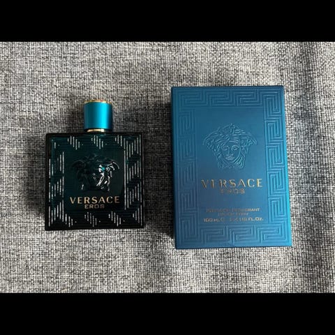 Versace Eros Pour Homme eau de parfum, herreparfume på 100 ml. Flakonen er i mørk turkis glas med præget Versace-logo på forsiden. Duften er en eau de parfum-variant beregnet til mænd og kan anvendes til daglig brug eller ved særlige lejligheder.