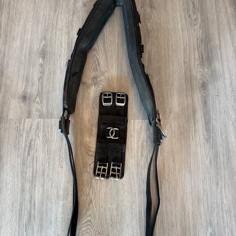 Cheval longeringsgjord til pony i sort. Gjorden er polstret for øget komfort og har flere metalringe til fastgørelse af longeringsudstyr. Justerbar med spænder og huller, så den kan tilpasses ponyens størrelse.