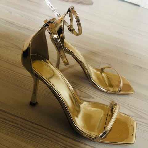 Sargossa stilet, str. 36 i guldfarvet skind.