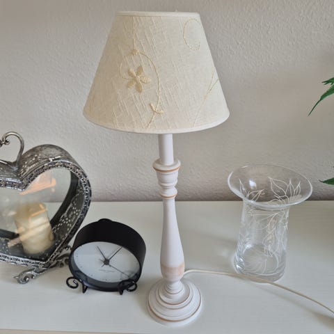 Bordlampe med pigeansigt og skærmholder.