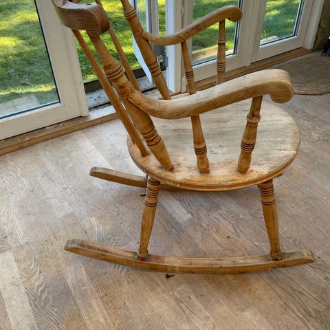 Ældre velholdt gyngestol, ingen pletter, ingen huller i stoffet