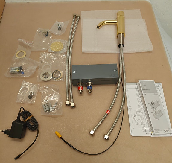 armaturet har været monteret ( der har ikke været vand igennem ) , derfor enkelte mærker på omløber og rosetter.