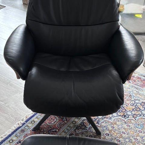 Polstret med sort anilin læder. I rigtig fin stand.