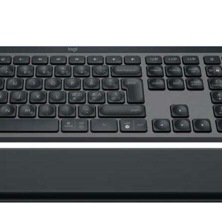 Logitech MX Keys tastatur og MX Master 3S mus som trådløst sæt i grå farve. Tastaturet har fuldt layout med numerisk tastatur og flade taster. Musen er en MX Master 3S med flere knapper og scrollhjul, egnet til præcis styring. Begge enheder forbindes trådløst, og der medfølger USB‑kabel til opladning. Sættet er velegnet til brug med stationær computer eller bærbar, hvor der ønskes eksternt tastatur og mus.
