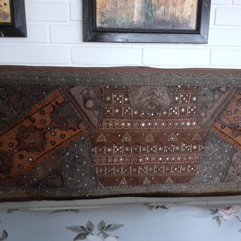 Bagsiden er beklædt med tyk filt, og monteret med to beslag, så den kan hænge på væggen.