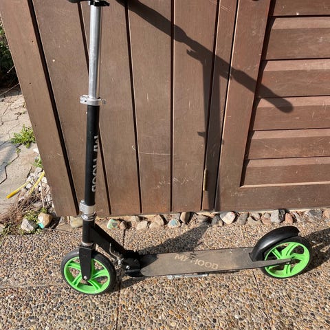 My Hood løbehjul i hvid med pink hjul. Løbehjulet har sammenklappeligt stel og justerbar styrhøjde.