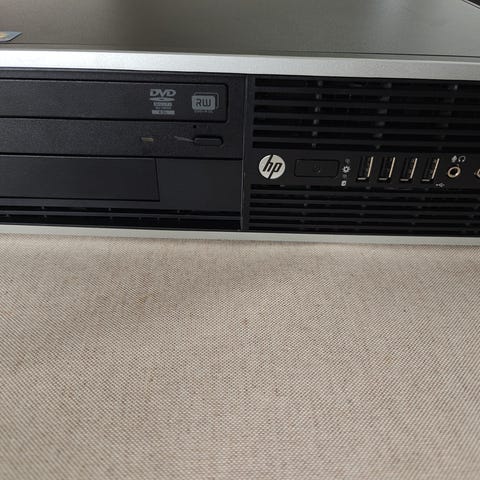 HP EliteDesk stationær pc i mini-formfaktor. Enheden har flere USB-porte på front og bagside samt video-udgange, herunder DisplayPort og VGA. Egnet som kompakt skrivebordscomputer til kontor- og hverdagsopgaver, hvor der er behov for en lille stationær løsning med mulighed for tilslutning af flere skærme og eksternt tilbehør.