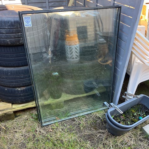 3 lags termorude. Halvrunde. 95,5 cm x 45,6 cm. Tykkelse 36 mm (4+12+4+12+4)
