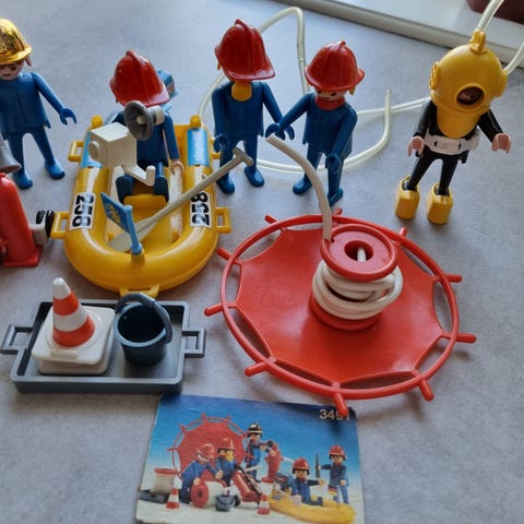 Brandbil og redningsvogn og brandfolk og masser af redskaber til brug for arbejdet.