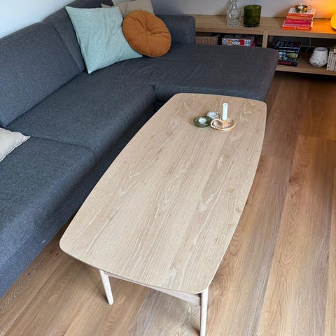 Justerbart sofabord i konstrueret eg