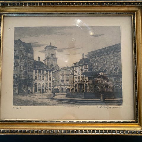 Original radering fra 1909 signeret M. F. Larsen.