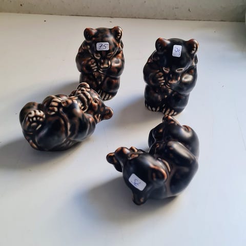 Stentøj, Knud Kyhn, motiv: Bjørneunger, 3 bjørneunger i stentøj fra Royal Copenhagen. Designer er Knud Kyhn.