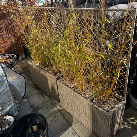 Alt kan hentes for 1000,- kr. men de skal tømmes for jord inden de kan flyttes, da de er meget tunge. Kan desværre ikke hjælpe med det, men der kan trækkes en trailer helt ind til haven.