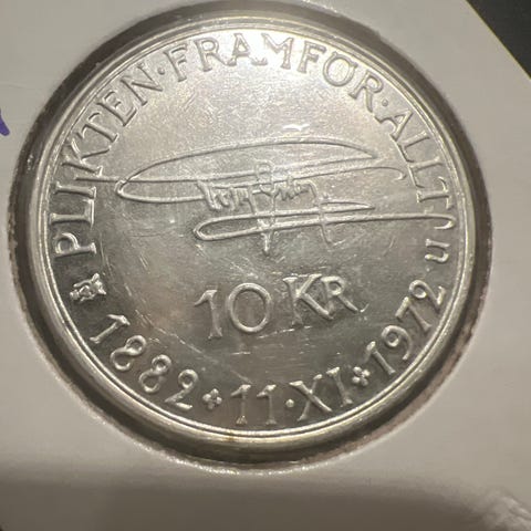 Norge 10 kroner 1968 mindemønter sølvfarvet