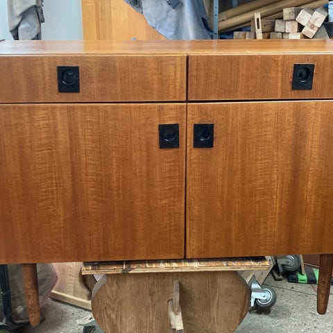 God stand men har et par pletter på toppladen og en revne i udtrækket på den ene skuffe