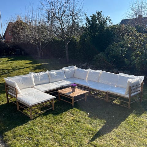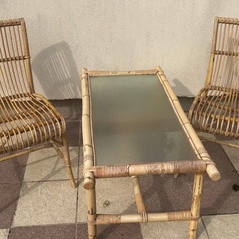 Rattansæt lounge sæt bambus bord og stole naturfarvet