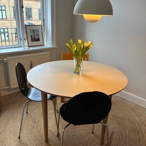 Smukt spisebord fra FDM Møbler (Unit10) i olieret eg. Tillægsplade medfølger. Der er et par overfladiske ridser i bordpladen (se foto nr. 3-5), som formentlig kan fjernes ved en overfladisk slibning.