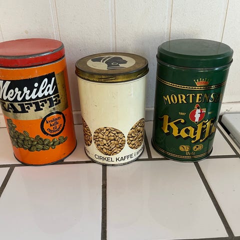 Fine retro mellemstore kagedåser. Har 2 stk. 60 kr stykket