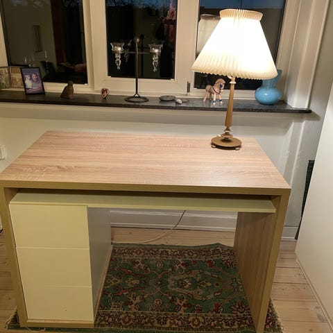 Lille skrivebord med målene 73cm i bredden og 50cm i dybden. Købt for en par siden og er primært blevet brugt til opbevaring. Skal bæres ned fra 2. Sal