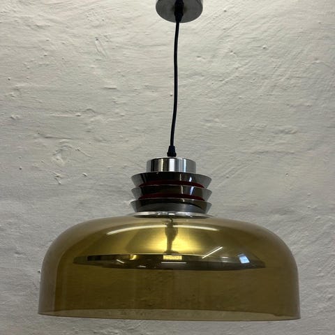 Lampen på billedet er den ikoniske "Here Comes The Sun" pendel, designet af den franske arkitekt Bertrand Balas i 1970.