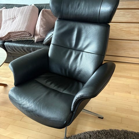Sælger min Conform Air hvilestol i mørkt læder (med matchende skammel). Købt brugt 2019 (oprindeligt fra Ilva 2018). Modellen er identisk med nutidens version hos Max Jessen (nypris ca. 18–20.000 DKK, se max-jessen.dk). Stolen er i rigtig god stand: læder med fin naturlig patina (ingen revner/huller), polstring holder formen perfekt, vippefunktion virker upåklageligt, du kan sove i den. Specielt designet træ på foden/base Super komfortabel ergonomisk stol med drejebase. stolesædet er 48 cm bredt. Kan ses i Vanløse. Spar tusinder på en tidløs klassiker til under halv pris!