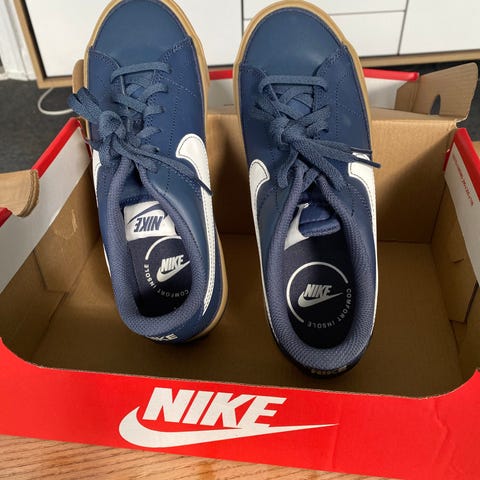 Nike Internationalist sneakers i str. 44. Modellen er i hvid med mørkt Nike-logo på siden og gummisål med mønster for bedre greb. Overdelen er i tekstil og syntetisk materiale. Velegnet som hverdagssko eller let træningssko.