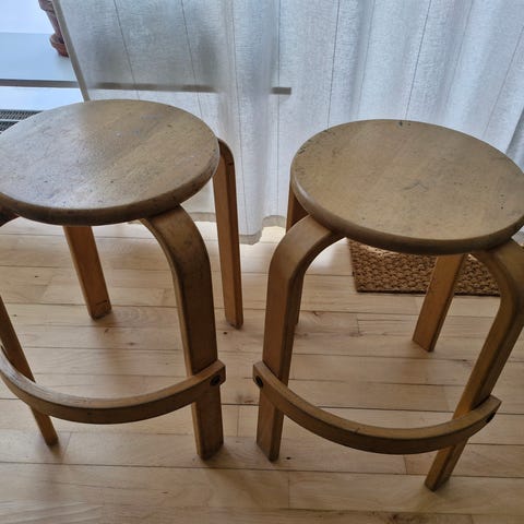 Skammel, Ukendt, 2 stk. Skammeler fra formningslokale på tidligere skole med lækker patina højde: 65,5 cm. Fodhviler 41 cm. Sæde: 33 cm.