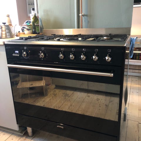 Lækkert Smeg CX61VMLS8 i rustfrit stål sælges. Det er 60 cm bredt og har 4 brændere med elektronisk tænding - 1 lille brænder, 2 mellem og 1 stor (større end på de fleste almindelige gaskomfurer). Ovnen er almindelig elektrisk ovn. Det er i rigtig fin stand, da det ikke har været i brug dagligt. Læs flere detaljer på Skousens hjemmeside (søg på modellen).