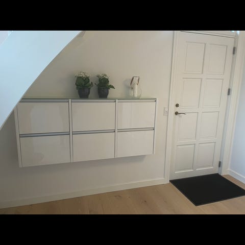 Skoskab der hænger på væggen fra Ilva sælges pga. flytning. Skabet er stort set som ny uden synlige brugsspor. Fra ny pris 2500 kr.