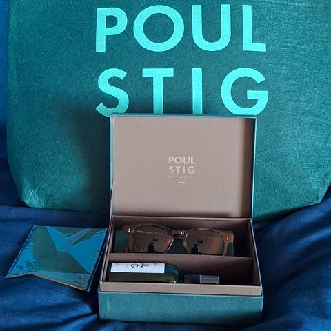 Brillerne leveres med original æske og etui, som ses på billederne. Velegnet til både mænd og kvinder.