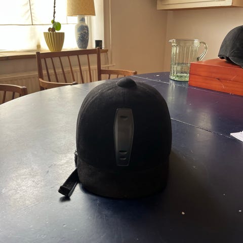 Ridehjelm i sort velour, størrelse 52. Hjelmen har igen synlige tegn på slid og er i god stand❣️