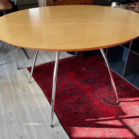 Hvidmalet massivt træbord. Trænger til rengøring og en omgang ny maling