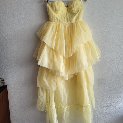 TP kjole model Eva blonde kjole til særlige lejligheder i størrelse XXL. Kjolen er grøn og fremstillet i polyester. Modellen har knælang blondeunderkjole og løs chiffonoverdel med dekorative detaljer ved skuldrene. Lynlås i ryggen. Egnet som fest- eller selskabskjole.Brugt en enkelt gang Se foto for pasform