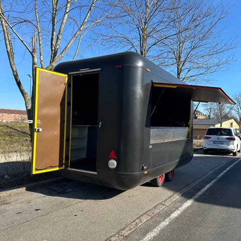Fint gulv, og nye hylder i hele vognen, indvendig er den beklædt med vaskbart stål, håndvask, køleskab medfølger