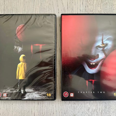 It 2 Film Collection dvd med begge film i den moderne filmatisering af Stephen Kings gyserroman. Udgaven indeholder "It" og "It Chapter Two" samlet i én dvd-udgivelse. På forsiden ses motiv med klovnen Pennywise, og bagsiden beskriver handlingen i begge film samt tekniske oplysninger som spilletid, lyd og undertekster. Egnet til samlere eller til dem, der ønsker hele filmserien samlet på én dvd.