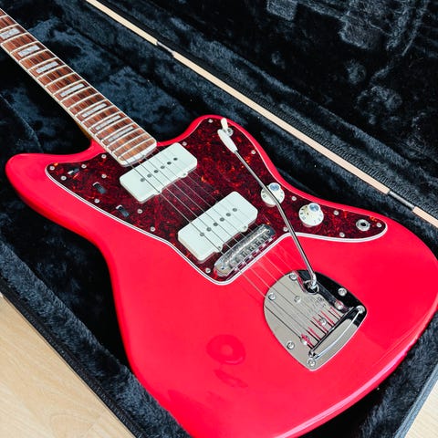 Fender Mexico Jazzmaster elektrisk guitar i cremehvid finish. Klassisk offset-krop med to single-coil pickupper og tremolo/vibratosystem. Rosewood-gribebræt med dot-inlays og 6-inline stemmeskruer. Velegnet til genrer som rock, surf, indie og alternative stilarter, hvor Jazzmaster-lyden og den karakteristiske krop ønskes.