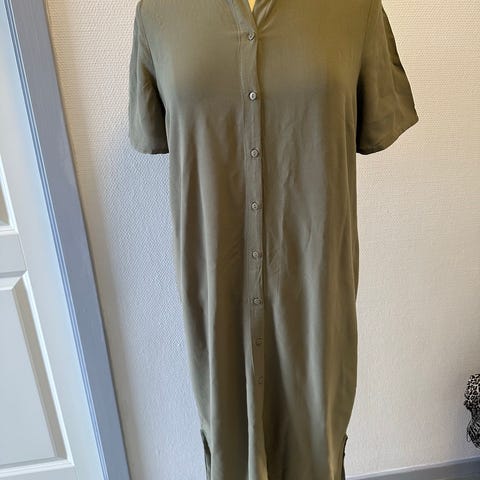 Pieces hverdagskjole i størrelse L til kvinder. Kjolen er hvid og fremstillet i viskose. Modellen har korte ærmer, rund hals og løs pasform med rynkedetalje foran. Lukning bagpå med lille knap. Velegnet som enkel hverdagskjole eller til mere afslappede anledninger.