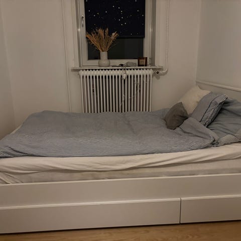 140 x 200 meter madras inkl sengeramme. Der medfølger ikke topmadras . Sengen er oprindelig en elevationsseng men det virker ikke