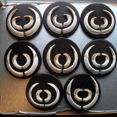 Alle er i flot stand og monteret på mørke træplader, som giver et klassisk og rustikt udtryk.