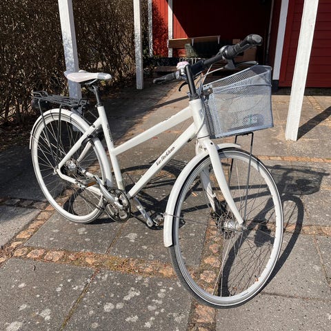 Von Backhaus bycykel til kvinder med 51 cm stelstørrelse. Cyklen har lav indstigning, kurv foran og bagagebærer bagpå. Farven er mint med sorte detaljer som kædeskærm, skærme og sadel. Velegnet som hverdags- og bycykel med oprejst siddestilling og klassisk styr med håndbremser.